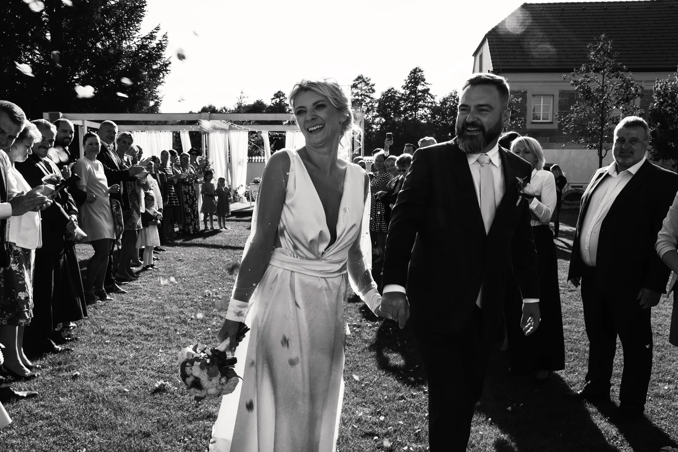 S velkou pokorou děkujeme tam nahoru, všem, co tam nad námi tak trpělivě drží ochrannou ruku. Děkujeme, že se naše cesty spojily. Děkujeme za perfektní počasí pro náš svatební den...